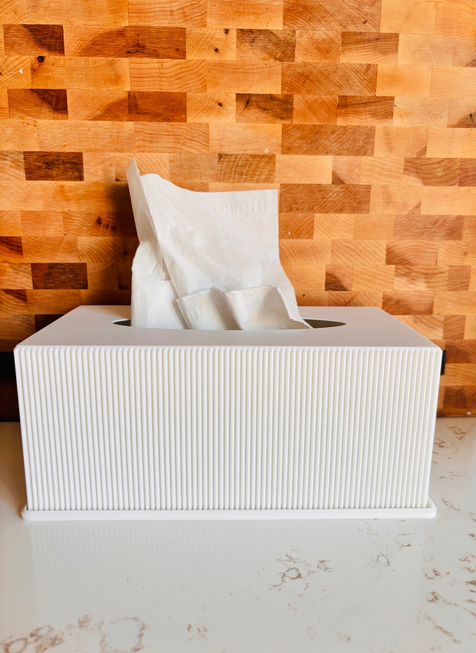Conception minimaliste moderne. Idéal pour camoufler vos boîtes dans votre décor. Format pour boîte de mouchoir standard de format rectangle.