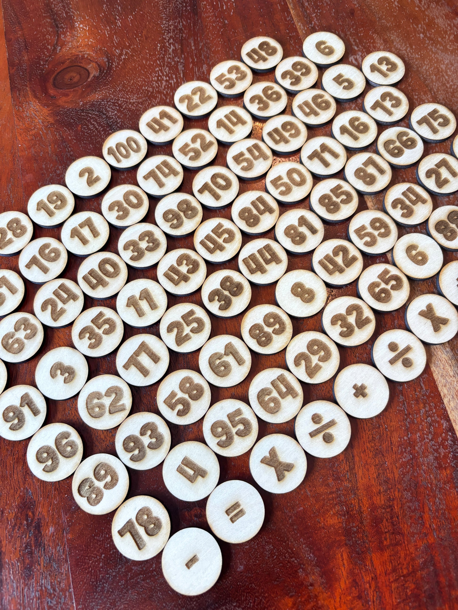 Inclus les chiffres de 1-100 ainsi que les signes mathématiques (X,/,-,+,=)